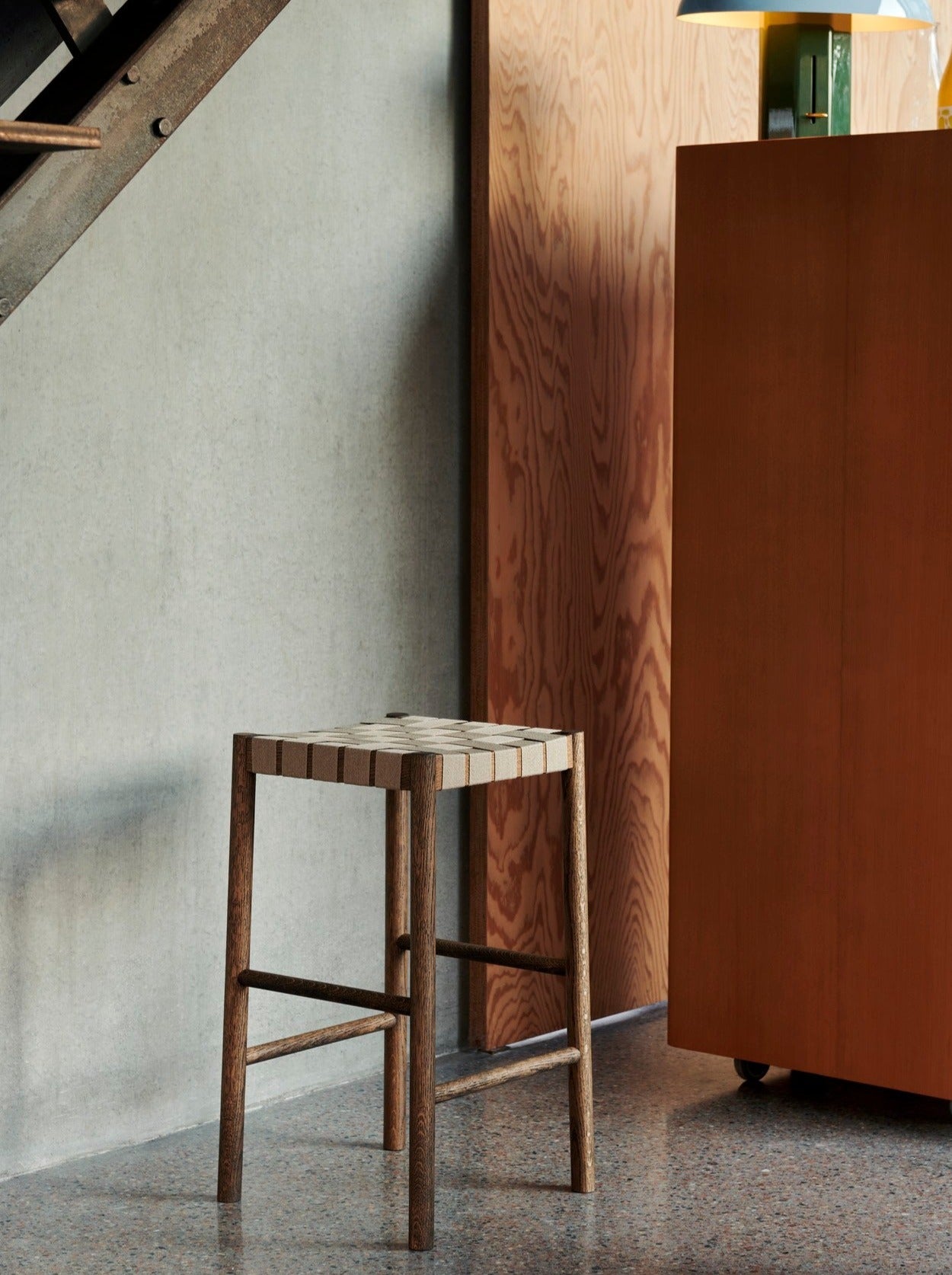 コペンハーゲンのベティ・ナンセン劇場にちなんで名付けられたこのスツールはラッカー塗装されたオーク材を使った頑丈なフレームが特徴です。 座面のストラップは天然のリネン繊維を手織りしたもので、柔らかくクッション性のある座り心地を感じて頂けます。 座面の高さは2タイプからお選びいただけます。