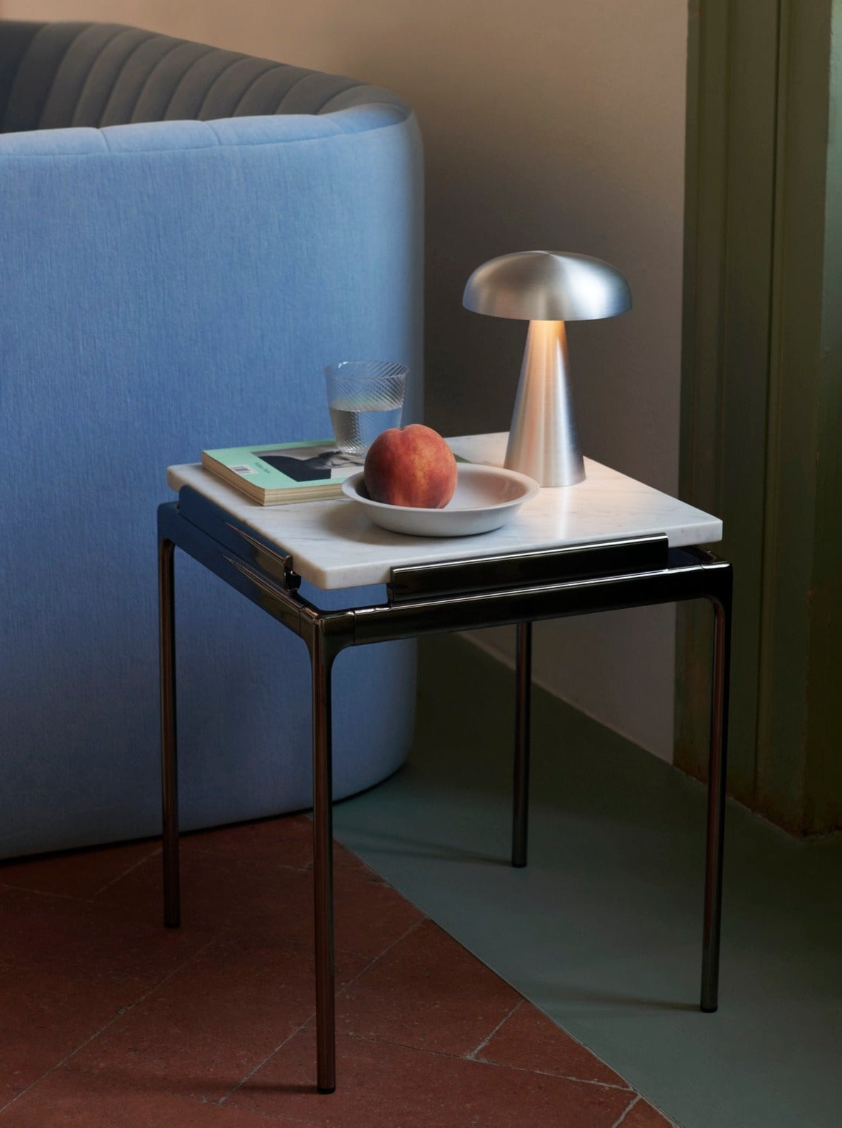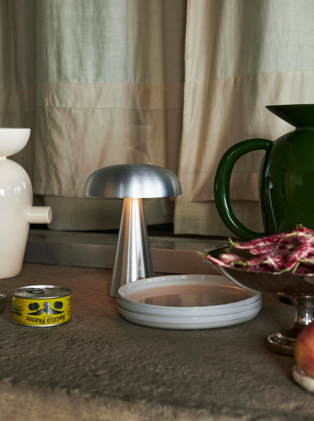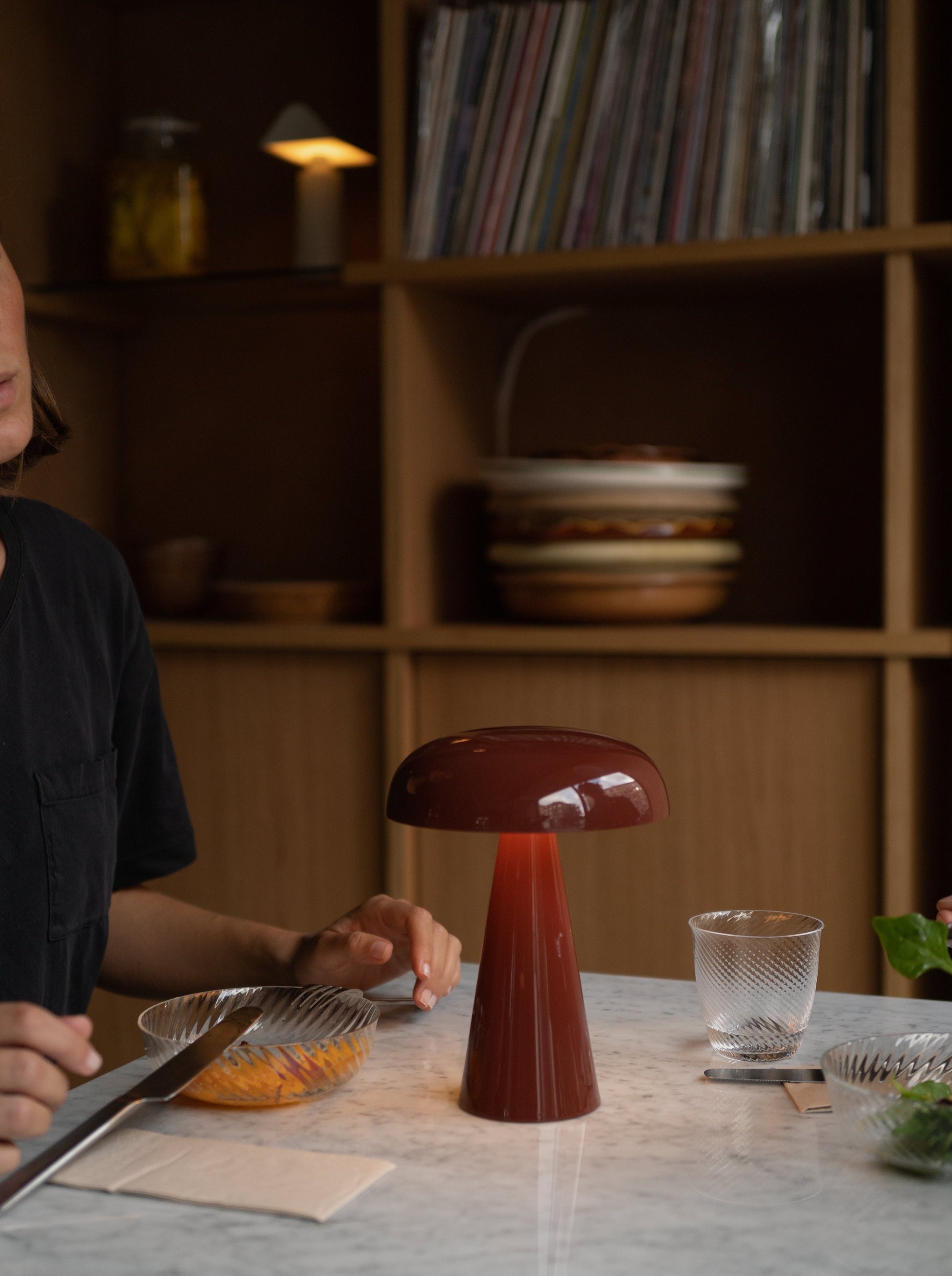 Comoは簡単に移動できるポータブルランプとしてデザインされました。住宅以外にもホテルやレストランまで、どんな空間にもインテリアにクールでコンテンポラリーなエッジを与えてくれます。リチウムイオンバッテリーの交換はできません。USB対応のACアダプターは付属しておりません。防水対応の照明ではありません。