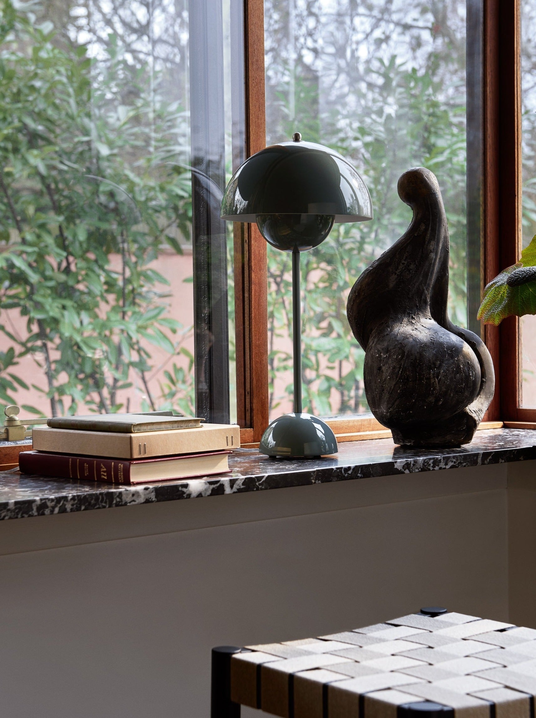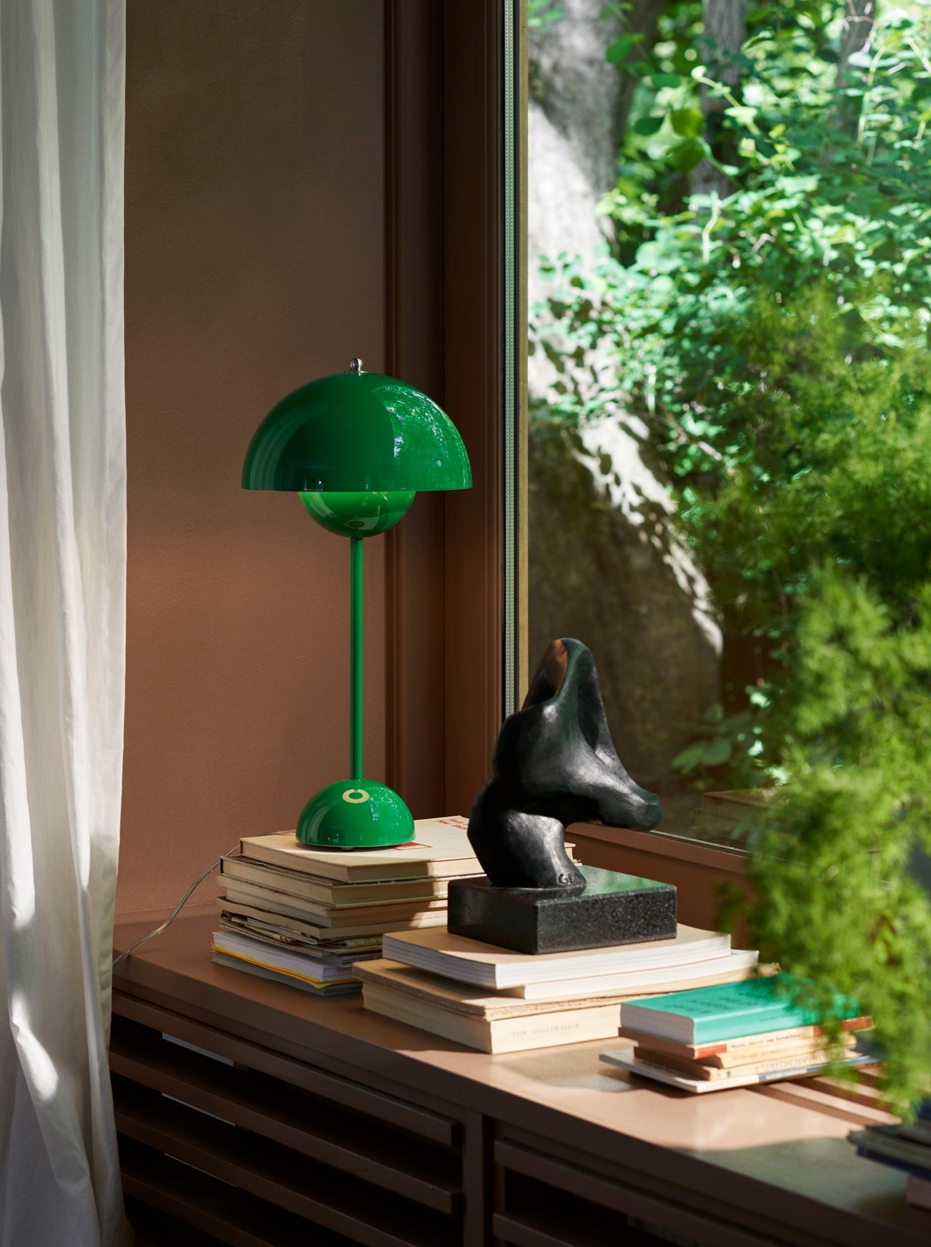 フラワーポット・ランプは、60年代後半に発生した反戦を御旗にしたフラワーパワー運動の代名詞にもなりました。当時は平和と調和を促進する為、旧来の慣習から脱却し、よりオープンでモダンな精神を受け入れる考え方が勃興し、そのことがデザイナー、ヴァーナー・パントンにも影響を及ぼしました。フラワーポットシリーズは、3種類のペンダントと2種類のテーブルランプで構成されており、幅広いカラーからお選びいただけます。2つの重なり合うシェードは金属を成形したものが組み合わされています。