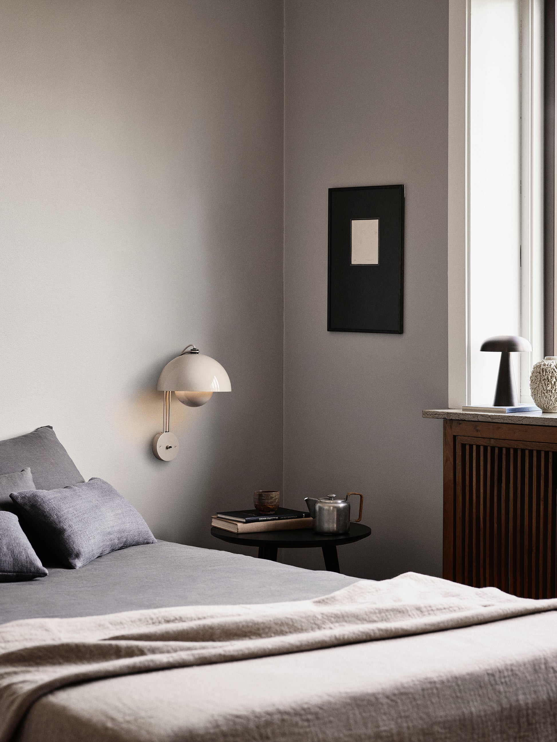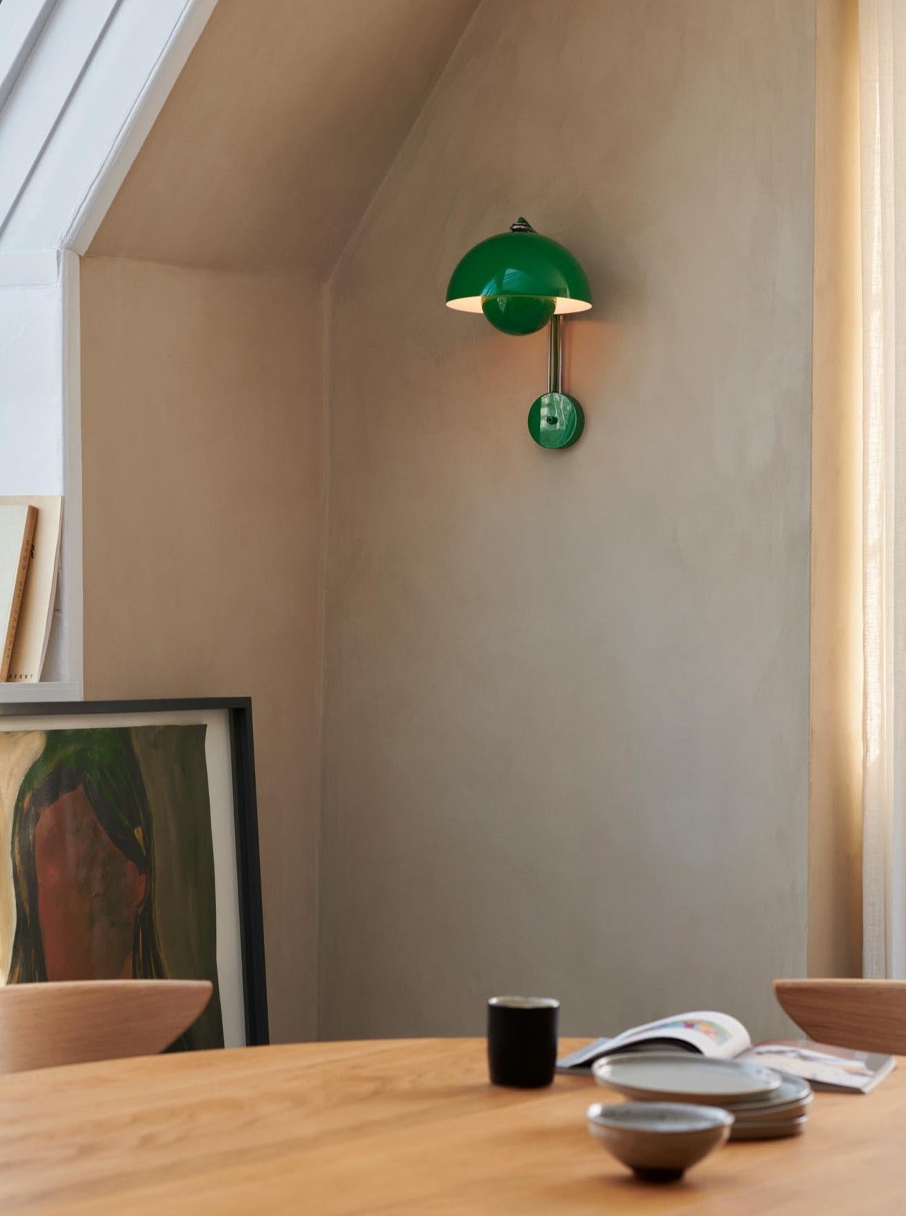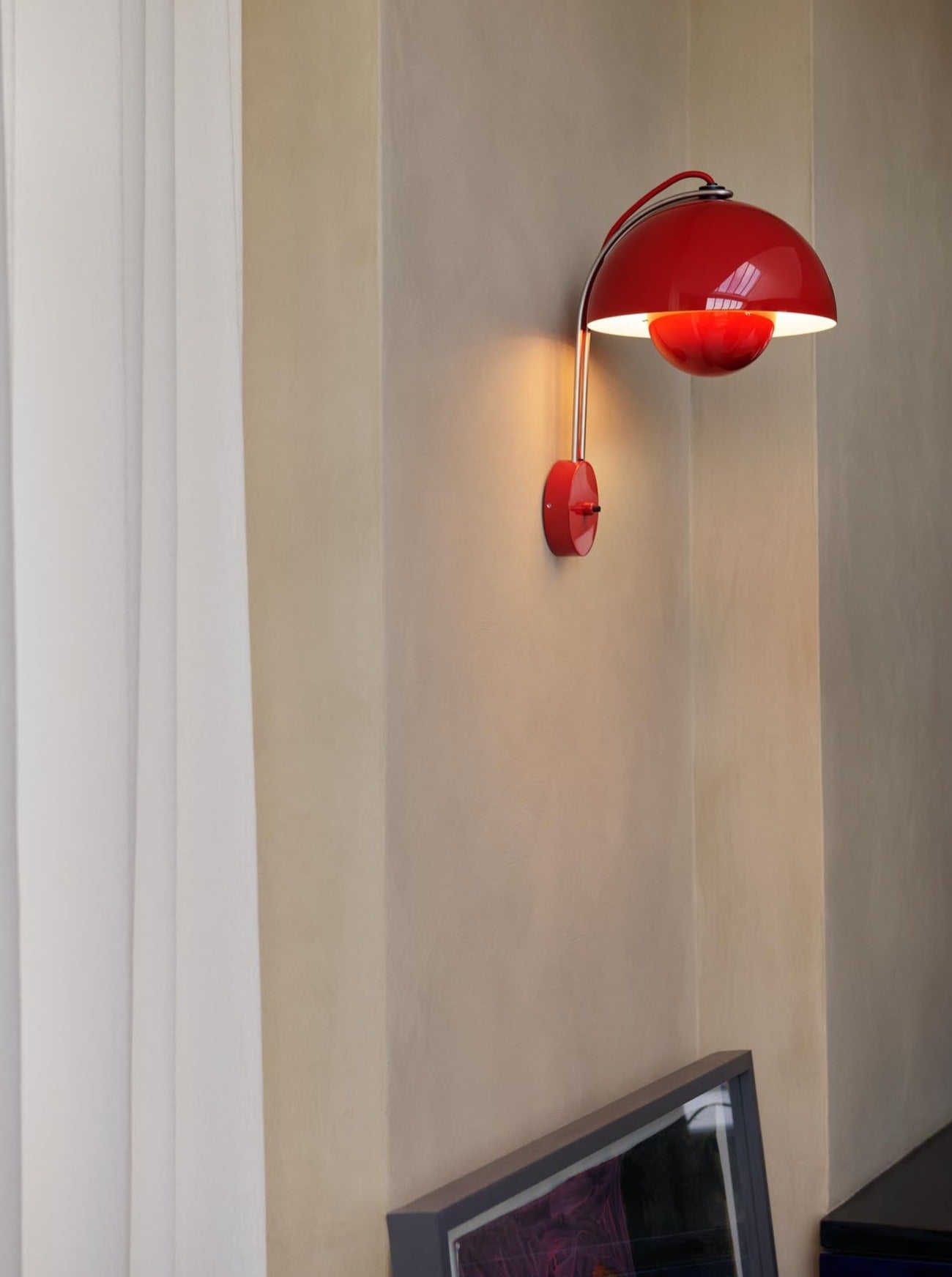 1960年代のデンマークを代表するデザイン、ヴァーナー・パントンの「フラワーポット」の象徴的なフォルムが、7種類のシリーズで登場。VP8は、フラワーポットの象徴的なフォルムをウォールランプにアレンジしたもので、廊下や読書コーナーを飾ったり、ベッドサイドテーブルの上の壁掛けにするのに最適です。